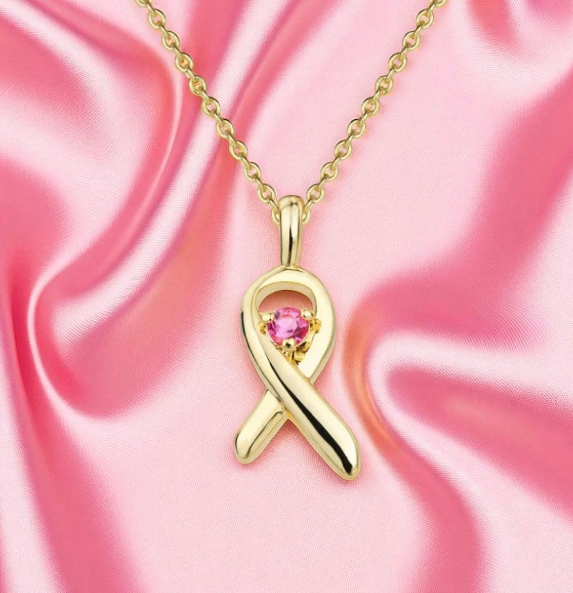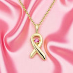 Show your strength and support with this stunning breast cancer awareness ribbon pendant. Handcrafted in 18K gold on 925 solid sterling, it features a sparkling 0.5 carat pink moissanite stone at its center, symbolizing love, hope, and resilience, a meaningful gift for survivors, supporters, or anyone wanting to honor the fight against breast cancer.